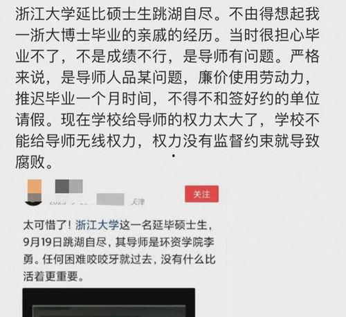 最近网络上可是炸开了锅,浙大研究生爆料事件成了大家茶余饭后的热门话题。这不,我就迫不及待地来给你揭秘一下这个事件的来龙去脉,让你一探究竟!